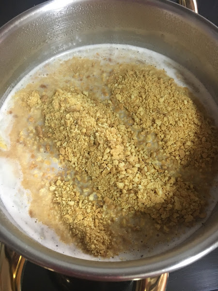 Se agregan las galletas molidas a la leche infusionada.