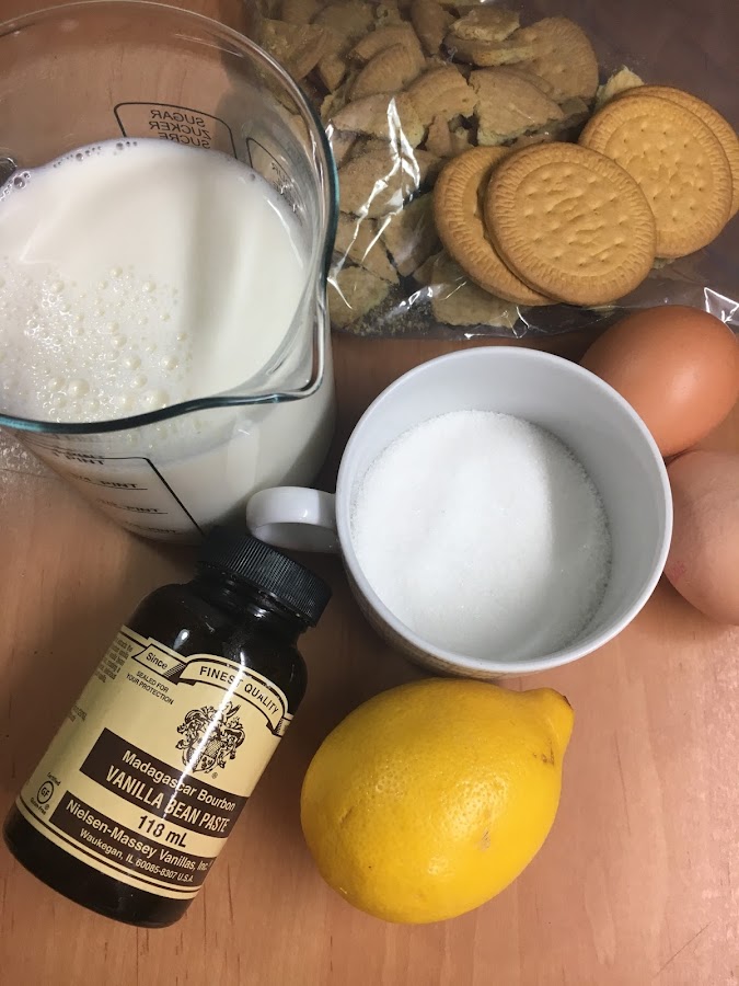 La receta original es la de mi tía Carmina que tengo publicada en el blog con el nombre "Natillas caseras de toda la vida"(pincha aquí) y la he adaptado al sabor de Galleta María.