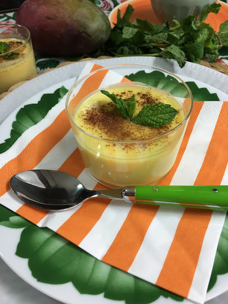 Esta es una recreación de las natillas caseras de toda la vida, de la receta de mi abuela (pincha aquí), pero con el añadido refrescante del mango.