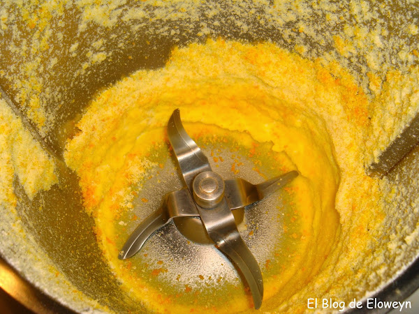 Una vez hayamos tirado por el bocal la piel de la naranja, paramos la Thermomix. La piel de la naranja habrá quedado perfectamente triturada.