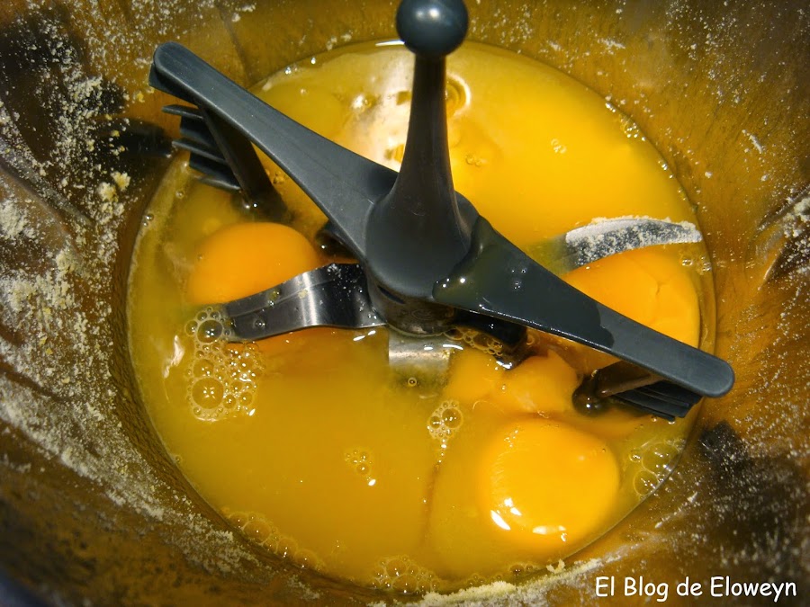Poner la mariposa en las cuchillas. Añadir los huevos.