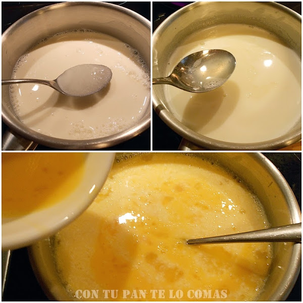 1. En un cacito poner a calentar la leche con el azúcar y cuando empiece a hervir lo retiramos del fuego.