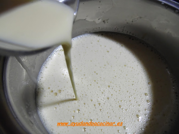 Agregar la leche de soja sabor vainilla que hemos calentado, a la mezcla de las yemas y azúcar que habíamos realizado en el paso anterior. Remover y llevar la nueva mezcla al fuego.