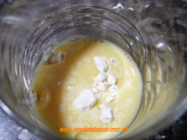 A parte, en el vaso que habíamos reservado con la leche de soja sin calentar, diluir la maicena