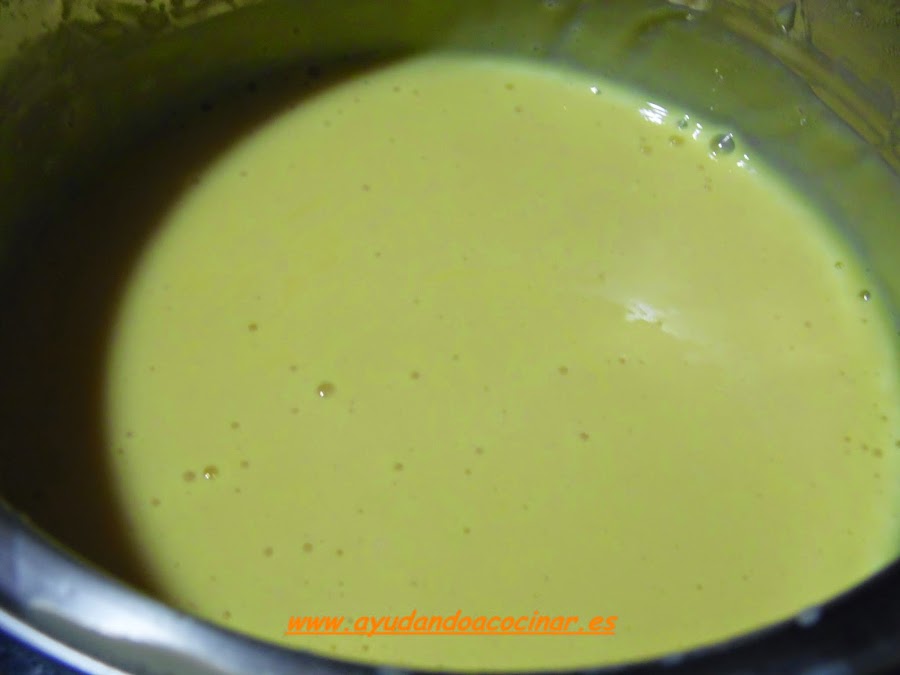 Dejar cocinar a fuego suave sin parar de remover. ( No deben hervir).
