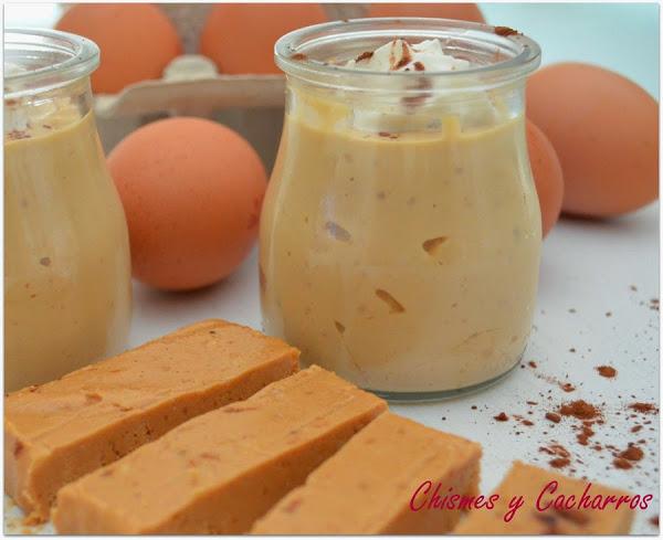 Retirar del fuego y mezclar con la crema de turrón. Colocar en los recipientes y guardar en el frigorífico.