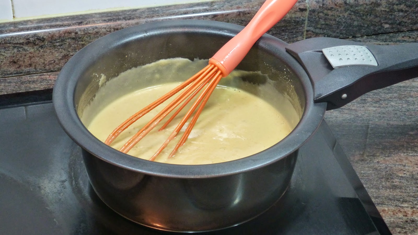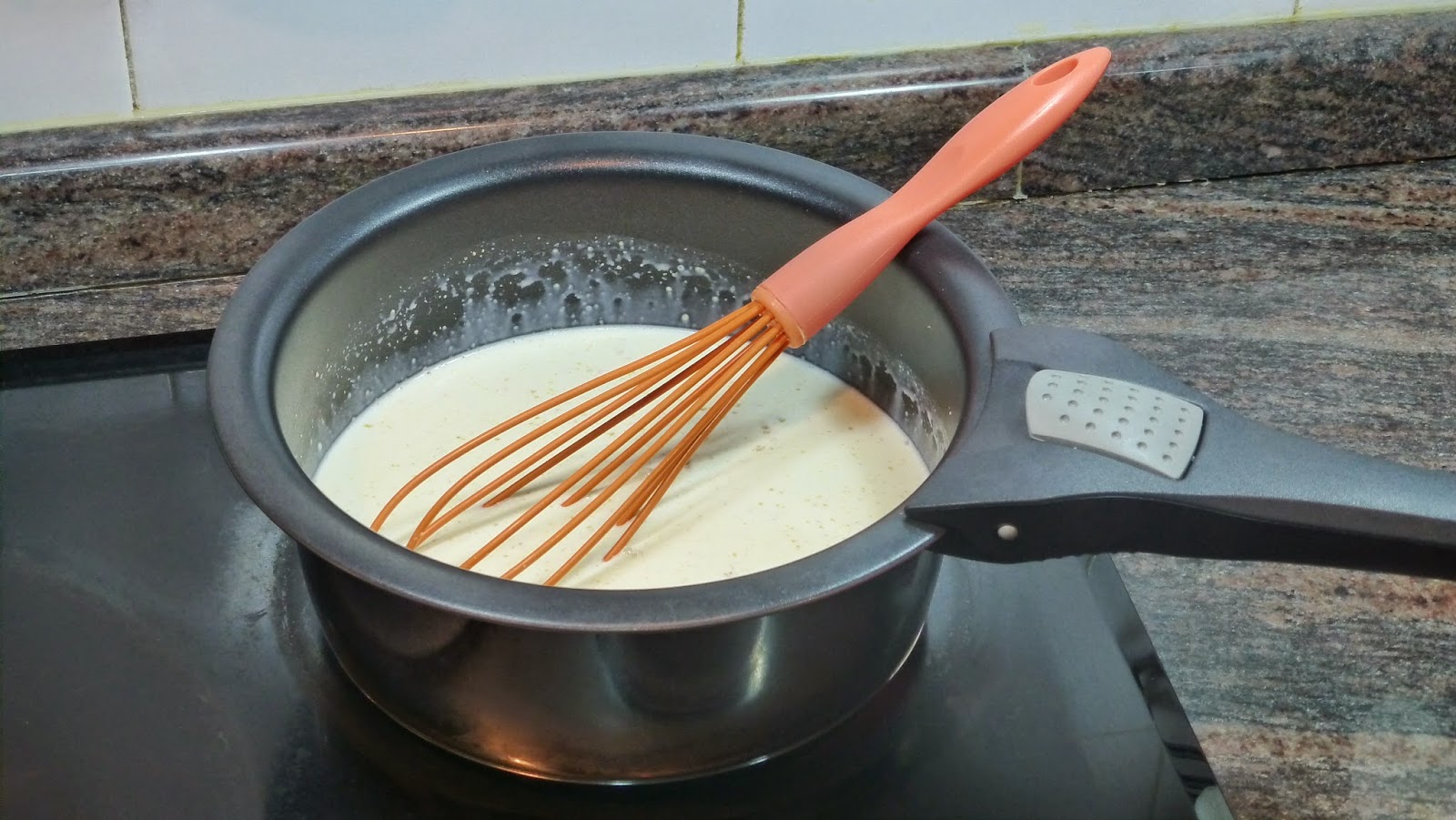 Ponemos al fuego sin dejar de mezclar con la barillas de mano hasta que quede todo bien integrado.
