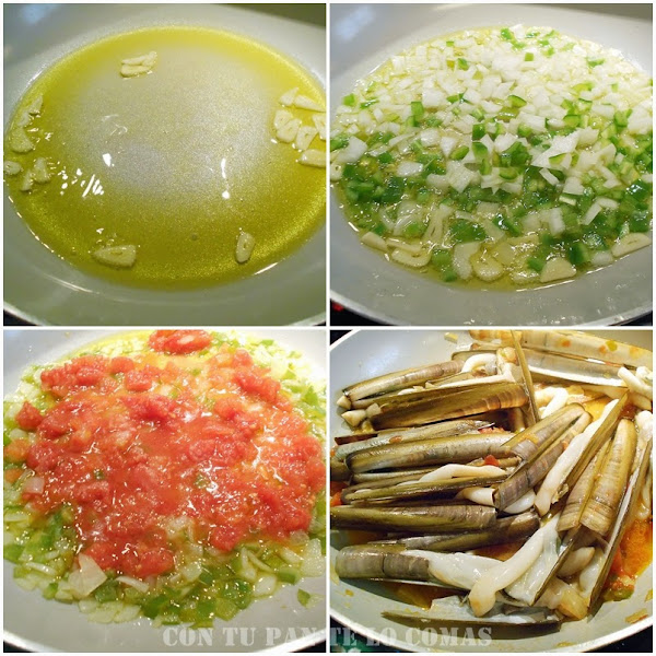 4. Echamos las navajas y subimos el fuego. Las navajas se abren enseguida y en un par de minutos ya estarán hechas. No las dejes más tiempo porque se quedan duras.