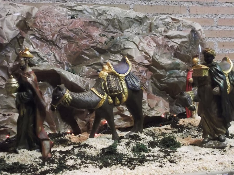 He estado pintando figuras para el belén del colegio de mis hijas, junto con otros padres y lo hemos montado después para unos días más tarde trasladarlo a la capilla y que esté allí durante la navidad.