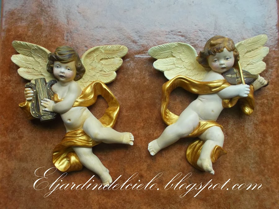 También le he pintado a una de las madres que me ayudó con las figuras, estos ángeles que le hacía mucha ilusión tenerlos. Me los compró y ya puestos.... pues así han quedado.