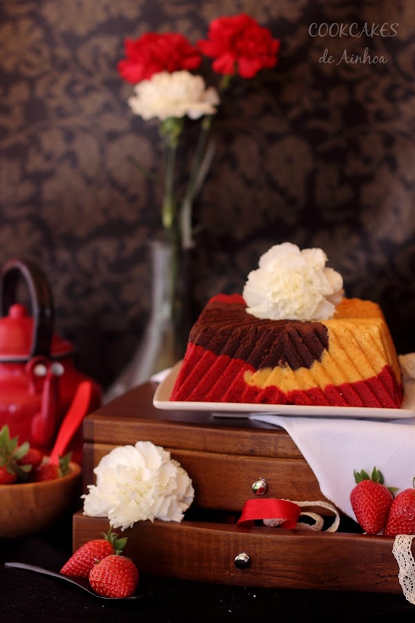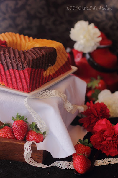 Desde que descubrí la elegante receta de Neapolitan Bundt Cake que publicó Miguel, del blog La repostería de Miguel... no pude resistirme a buscar un hueco y prepararla. Me encanta el acabado estético que tiene, la combinación de los tres colores, sin necesidad de cremas o glaseados. Es realmente precioso! Y además, está riquísimo! Las fresas encajan perfectamente con el chocolate y la vainilla... dos imprescindibles en la despensa de un buen repostero. A la receta de Miguel le he hecho algunos ligeros cambios... sin más dilación, aquí está la receta.