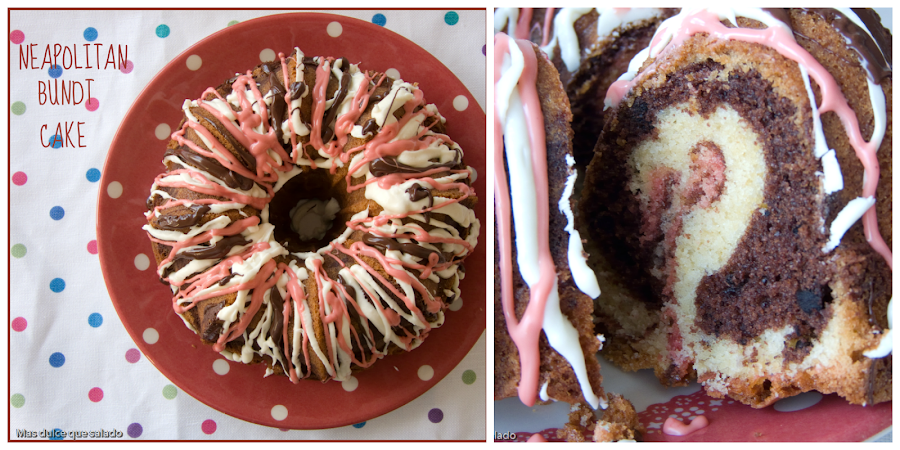 La receta de hoy tenía ganas de hacerla hace mucho tiempo pero nunca encontraba el momento. La semana pasada me decidí y me puse manos a la obra. Es una adaptación del Pastel napolitano marmoleado de Peggy Porschen, aunque para la elaboración y posterior desmoldado he seguido los pasos de Bea Roque, que los explica con todo lujo de detalles en su libro y en su blog