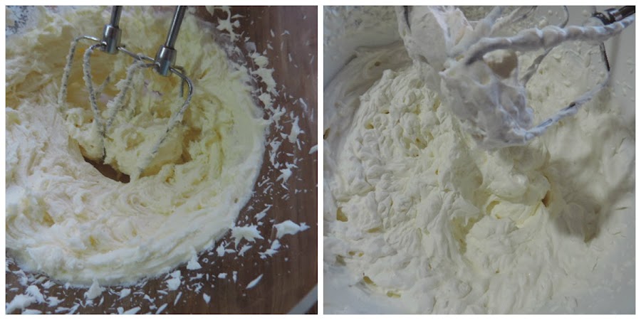 Seguir los mismos pasos que en la preparación del sabor de fresa,pero cambiando la cucharadita de fresa por una de vainilla.Colocar también en una manga pastelera con boquilla lisa,pero un poco más pequeña que la boquilla utilizada para el sabor fresa.Guardar en la nevera.