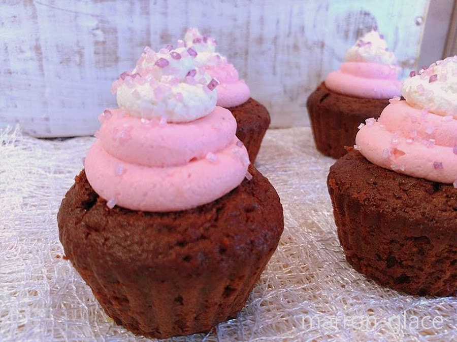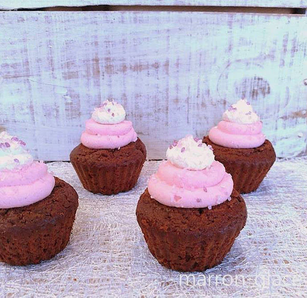 Cortar el copete a los cupcakes y hacer un agujero en el centro con la ayuda de una cucharadita o un descorazonador de manzana.