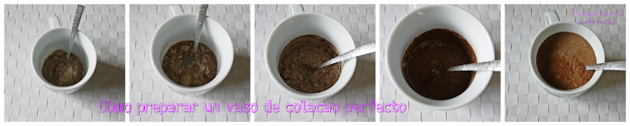 Pues es bien sencillo. Basta con poner un par de cucharaditas en la taza, añadir un culín de leche, muy poca, otro par de cucharaditas o tres y remover, remover hasta que se disuelva. Luego incorporas el resto de la leche y , ¡listo!