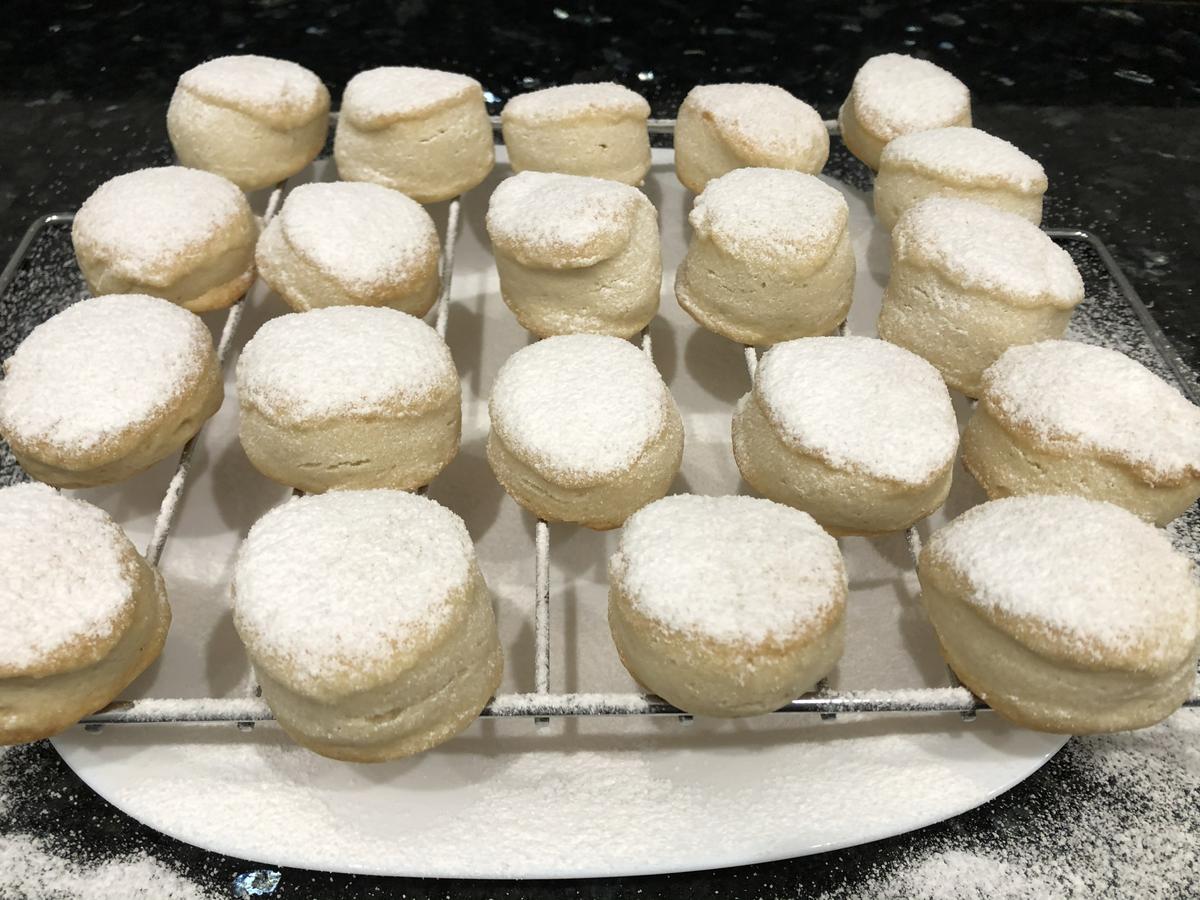 8. Sacamos del horno y dejamos sobre una rejilla. Cuando estén tibios, los espolvoreamos con azúcar glass a través de un colador.