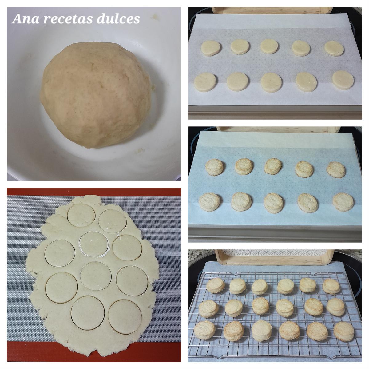 Pasado el tiempo, estiramos la masa con un rodillo de 1 centímetro de grosor y cortamos con un cortapastas redondo de 5 centímetros.
