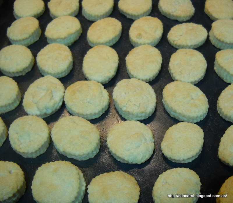 Una vez pasadas las dos horas, extendemos la masa en una superficie limpia y pasamos el rodillo, una vez aplanado untamos manteca sobre la masa. Doblamos la masa sobre si misma y volvemos a pasar el rodillo para volver a untar de manteca ...repetir un par de veces mas y cortar los nevaditos a la medida que mas os guste... y hornear a 180ºC durante 15 minutos.