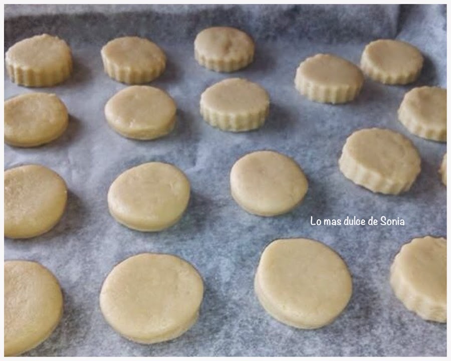 Cortamos con corta pastas y vamos colocando en una bandeja forrada de papel de hornear.