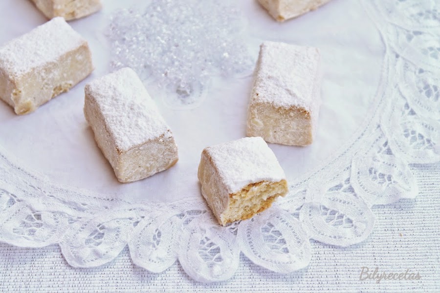 Ponemos todos los ingredientes en un bol y amasamos hasta conseguir una pasta homogénea. Estiramos en superficie plana y doblamos desde los bordes hacia el centro en ambos laterales. Volvemos a estirar y repetimos el mismo proceso girando la masa a 90º para que tenga dos pliegues en total. Dejamos una plancha final de aproximadamente un dedo de grosor, la cubrimos con papel film y la guardamos en la nevera por un mínimo de 2h. Para hornear los nevaditos precalentamos el horno a 170º, forramos una bandeja de horno con papel vegetal y cortamos rectángulos en mi caso de la masa que teníamos guardada en la nevera. Horneamos hasta que estén ligeramente dorados. Aun calientes rebozamos azúcar glas y espolvoreamos otra capa extra en la parte superior. Dejamos enfriar por completo y a disfrutar de esta delicia tan navideña.?