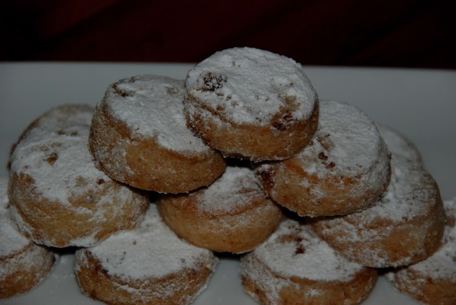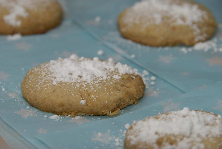 Sacar del horno y dejar templar (no enfriar) para rebozarlos en azúcar glass.