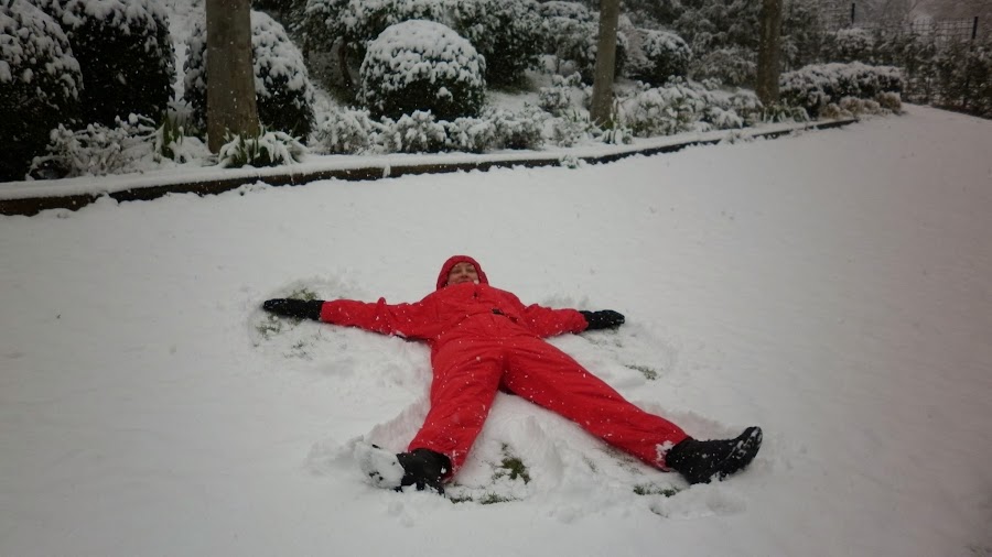 Y la nieve.... te hace transportarte a la Navidad más deprisa, así que saqué mi plato de angelito a la nieve y se puso hacer el "angel" con la nieve!!!! jajajajja Que os parece la marcha que tiene el angelito!!!