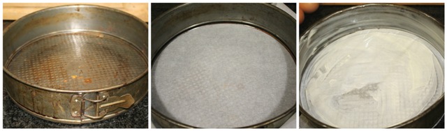 Pondremos papel de horno entre la base y los laterales y cubrimos la base y los laterales con mantequilla.