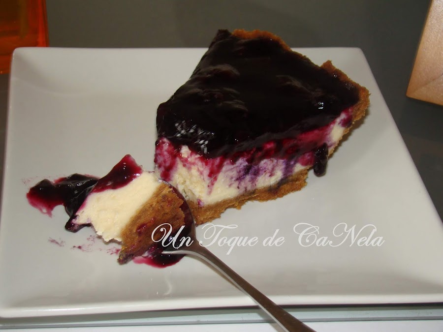 Con la tarta fría, esparcir la cobertura de arándanos y de nuevo al frigo, al menos 3 horas antes de tomar.