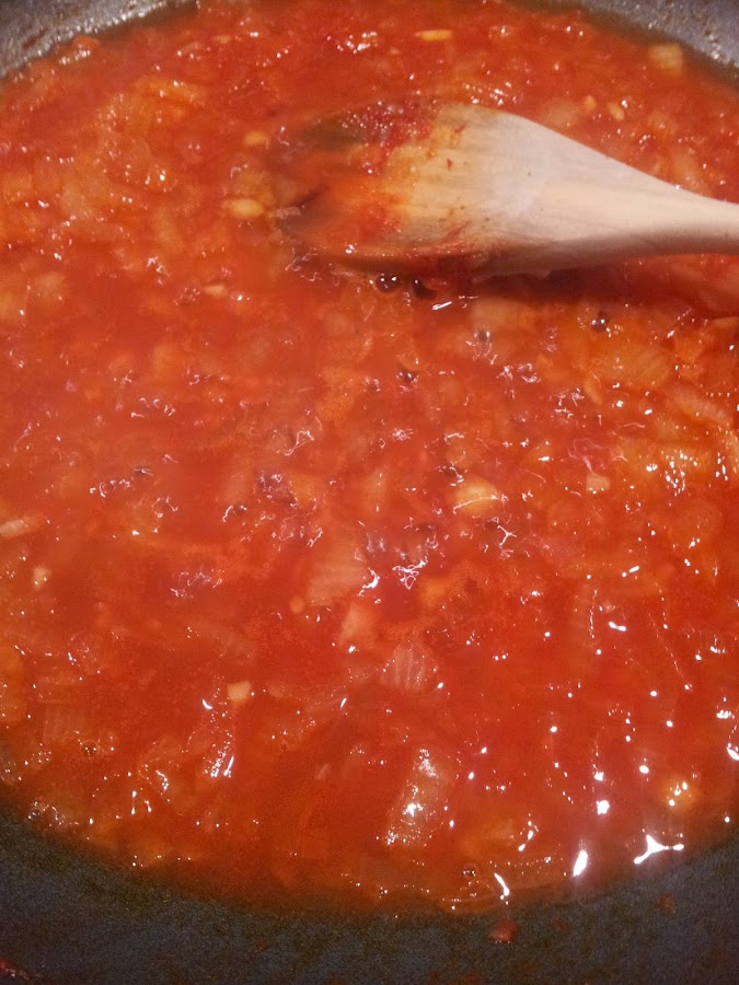 Incorporamos el agua y dejamos reducir la salsa unos 15 minutos a fuego medio.