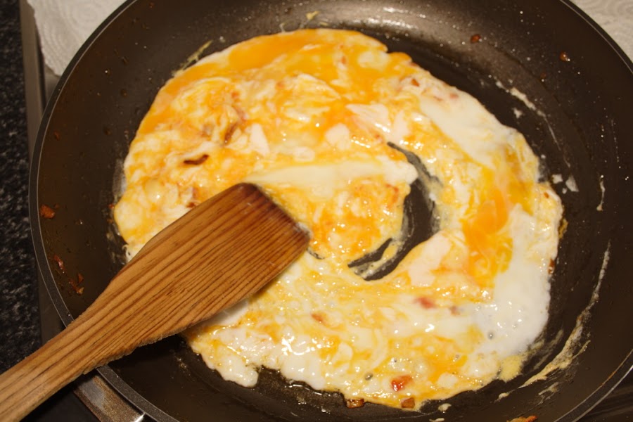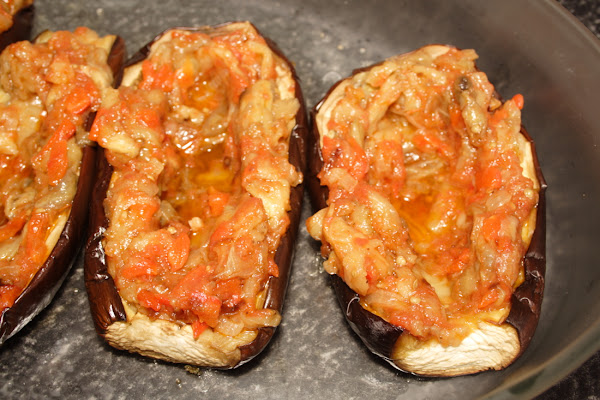 Consejo: Como en casa a algunos les gusta el huevo muy hecho, he optado por hacerlo revuelto y rellenar con el alguna de las berenjenas. También quedan muy ricas.