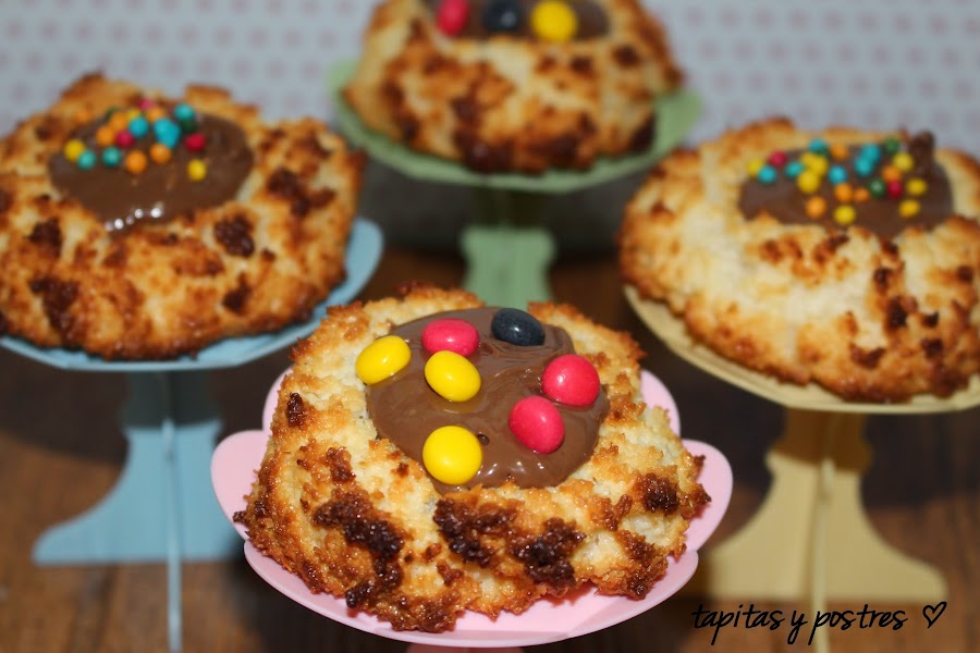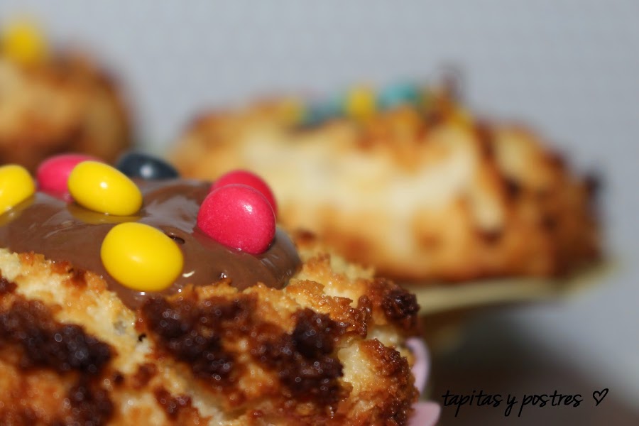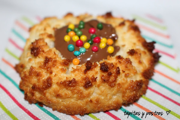 El caso, es que a mí, me gusta probar previamente, la receta que vayamos a hacer y buscando en la red, encontré, casualmente, estos nidos de coco y nutella en el mismo blog de Elena Pilar, del cual saqué la tarta-flan de queso y limón, que publiqué ayer. He adaptado la receta con thermomix, ya que ella los hace manualmente.