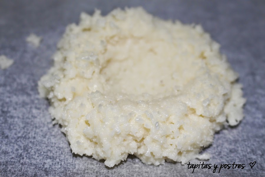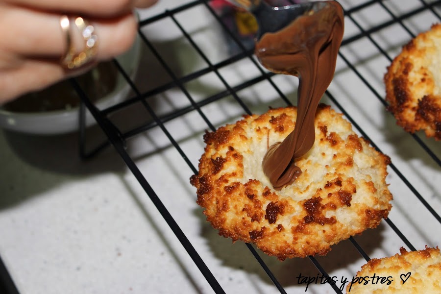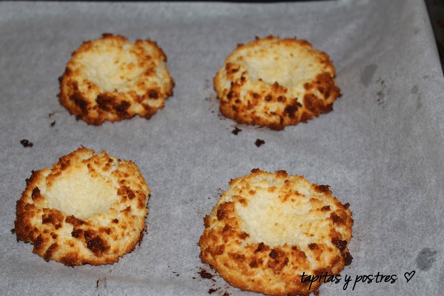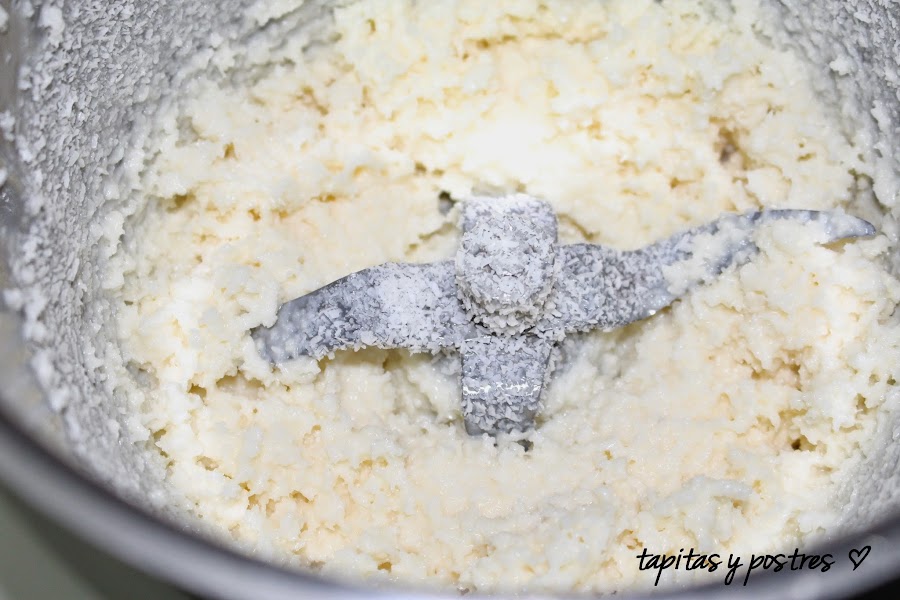 Si los hacemos sin thermomix, es muy sencillo, mezclamos con varillas la clara de huevo, con el azúcar vainillado y la sal, Agregamos la leche condensada y mezclamos bien. Cuando todo esté bien integrado, echamos el coco y removemos. Nos quedará una pasta espesa. A partir de aquí, seguid como indico más arriba.