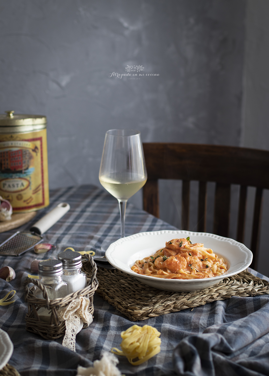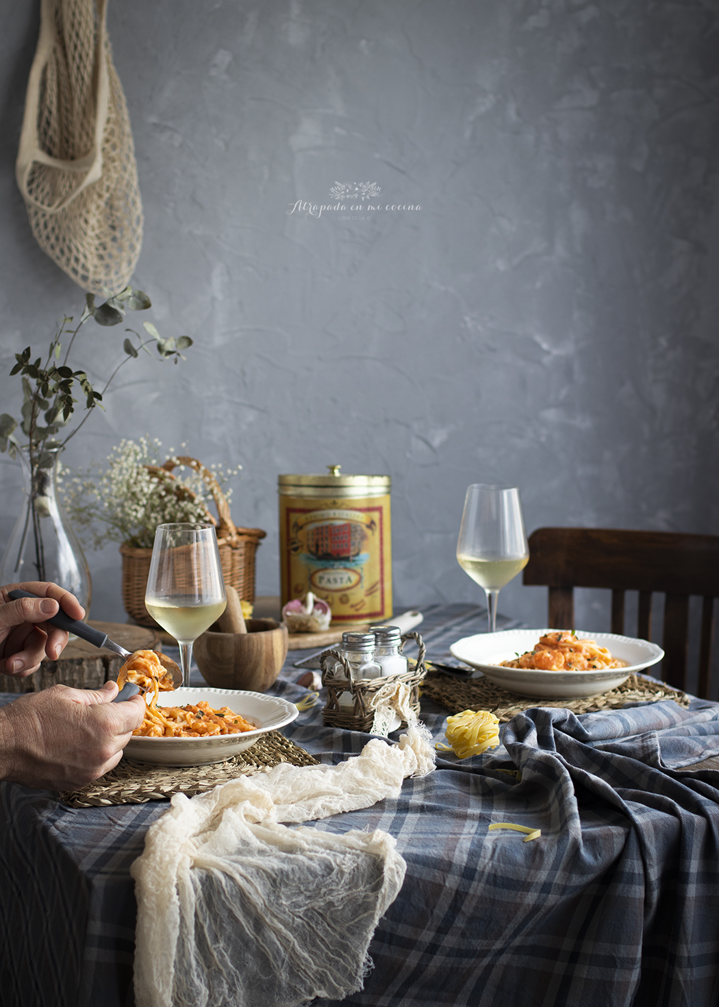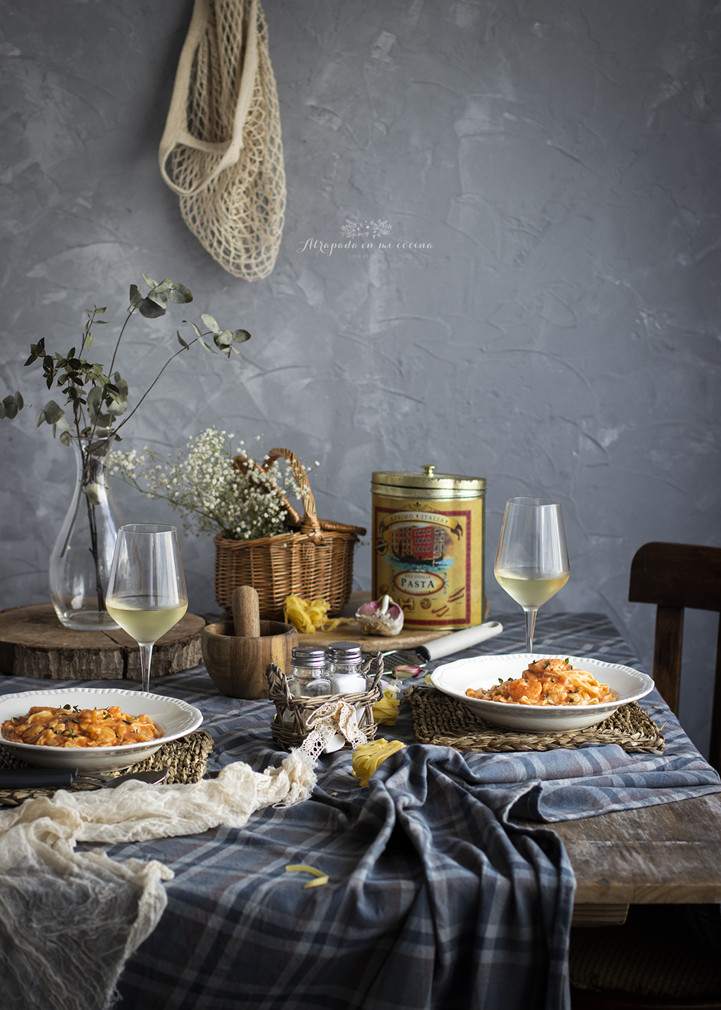 De nuevo se pasea por el blog un plato de pasta, y es que en casa el plato de pasta semanal no lo perdonamos, aunque siempre procuramos hacerlo variado, y como muestra tenéis todos los platos de pasta publicados hasta el momento. La pasta en este plato queda muy jugosa, envuelta en la delicada salsa que le hemos puesto. Ya varéis qué buena y deliciosa, y si acompañamos con una copita de vino blanco, que ya va apeteciendo, y mucho, pues ya será genial.