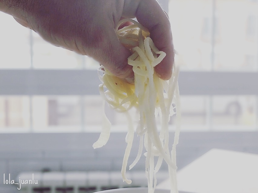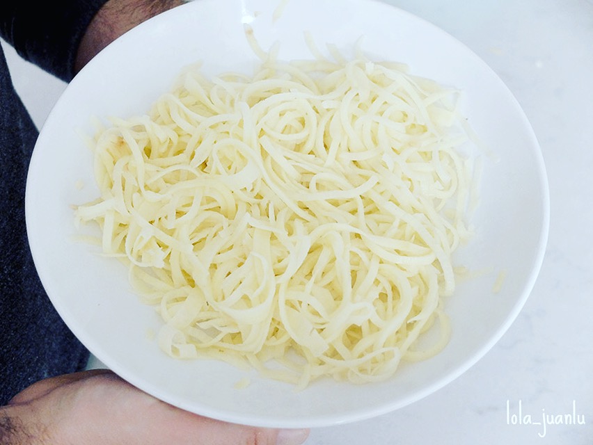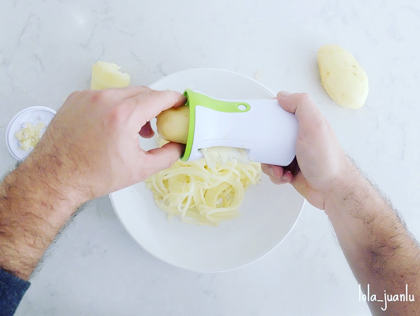 Una vez hemos terminado de convertir todas las patatas en virutas, las podemos salpimentar al gusto. Nosotros no lo hicimos.