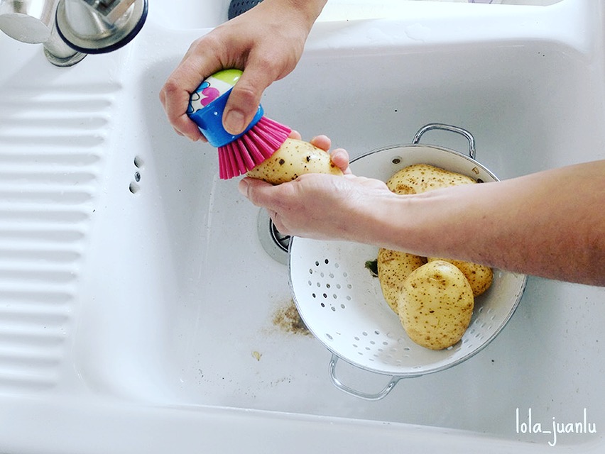Lavamos las patatas y las secamos bien.