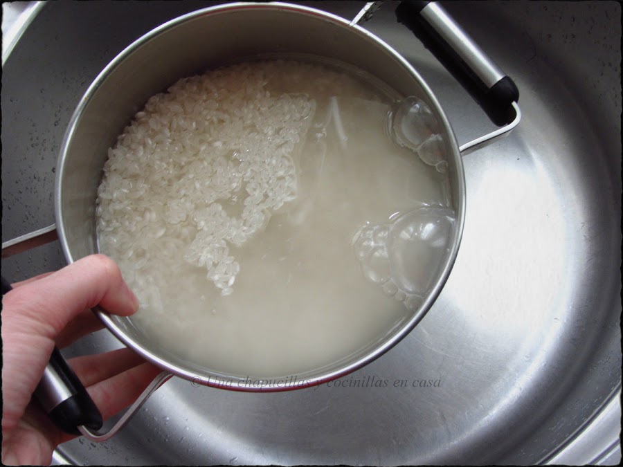 Lo primero que tenemos que hacer es lavar el arroz hasta que el agua salga clara y limpia.