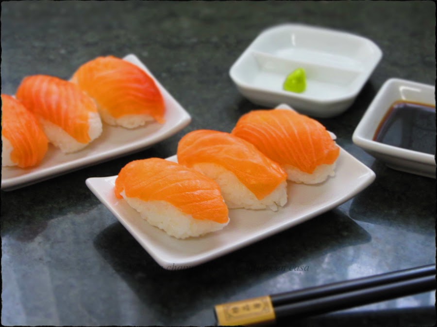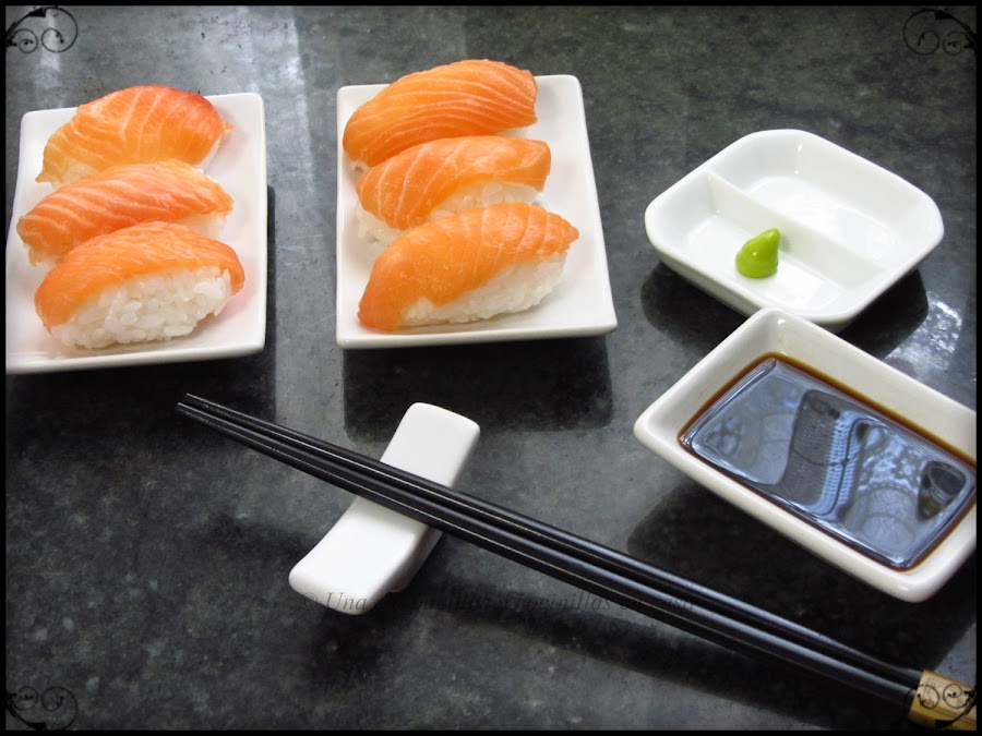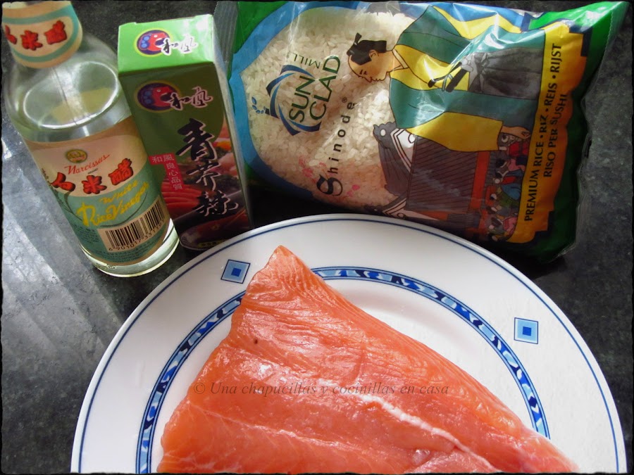 Hoy os traigo una receta un poco mas elaborada, la parte mas fácil es preparar el sumeshi (arroz para sushi), pero a la hora de cortar el pescado es donde yo le veo mayor dificultad, hay que tener unos buenos cuchillos bien afilados (no es mi caso :-( ) así que hice lo que pude y oye, para un experto chef de sushi quizás no le valga pero, se comía perfectamente sin ningún nervio en los filetitos, ni se desmoronaba al morder.