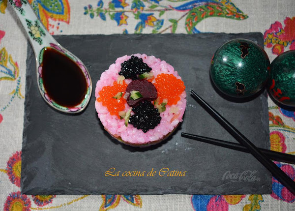 Este mes para mi el reto de Desafío en la Cocina, ha supuesto un verdadero reto, porque tener que cocinar algo que no te gusta y que no te vas a comer, cuesta. Podía haber pasado y gastado mi comodín, pero es que soy un poco masoca. Al final lo he hecho o por lo menos lo he intentado y estoy contenta con el resultado, por lo menos las fotos están bien, lo demás, ni idea porque no lo probé, se lo llevó mi hija Nuria que a ella y a su marido les encanta. Eso si, he aprendido tanto sobre el sushi que es como si hubiera hecho un master. He cocinado dos versiones. Se puede acompañar con una salsa de rábanos picante Wasabi o mezclar salsa de soja con miel y jengibre rallado.