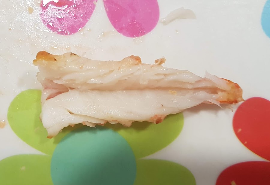 Para el salmón sólo hay que partirlo en pequeños rectángulos de unos 3 dedos de largo.