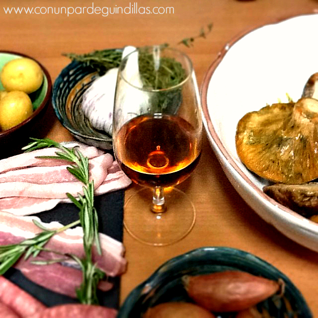 4.- Cuando el brandy esté a punto de reducir, añade las setas e introduce en el horno (previamente precalentado), unos 20 minutos a 180ºC con fuego solo en la parte superior.