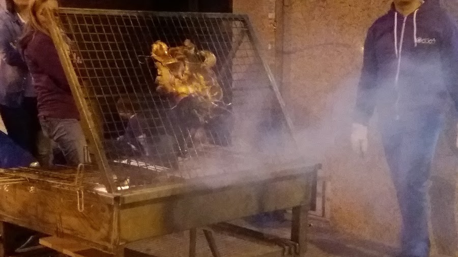 Pasear por las calles el lunes de la xulla es oler a carne asada y ver el humo que las invade saliendo de las hogueras......