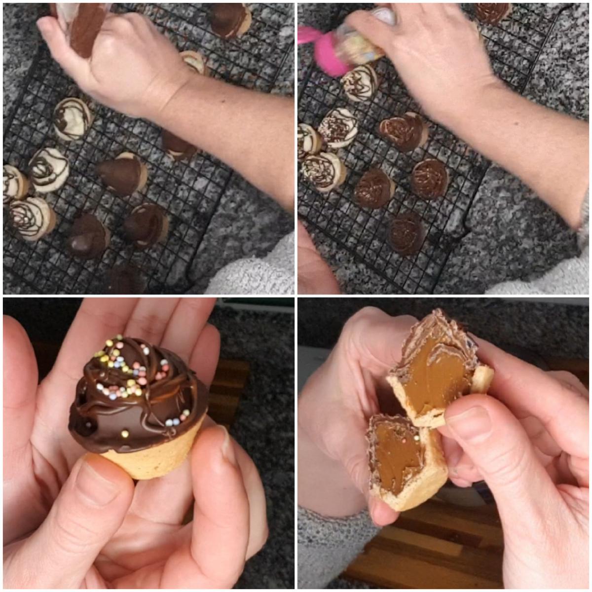 Refrigerar Cuando tengamos todos los conitos listos, los metemos en la nevera mínimo una hora. Tienen que quedar bastante duritos para que soporten después el calor del chocolate derretido.