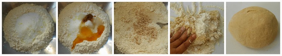 Colocar en un bol la harina con al sal, añadir el azúcar con la cáscara de limón y mezclar. Añadir la