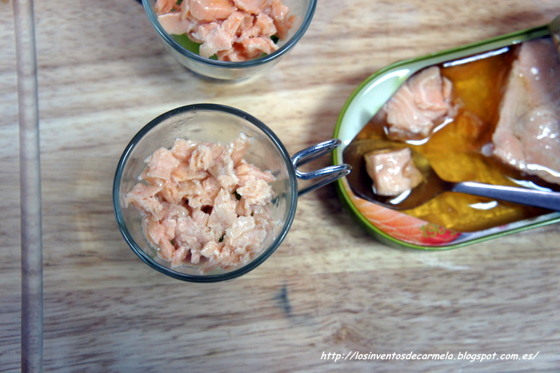 1) Escurrir el salmón con cuidado de que no se desmigue demasiado. Reservar.