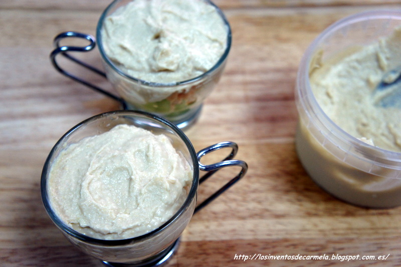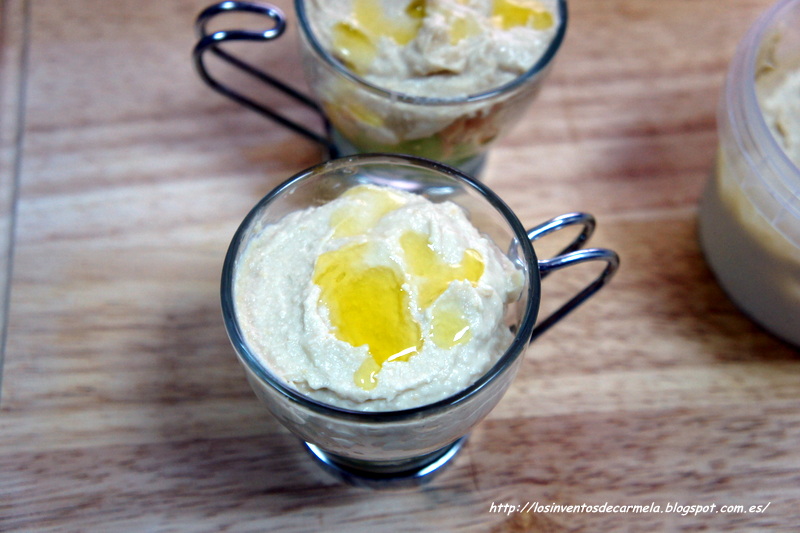 - 1 tarrina pequeña de hummus, una cucharada sopera abundante por vasito