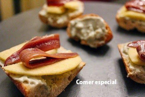 3. La tosta de queso azul con manzana y anchoas me pierde por su combinación de dulce y salado. Si te pasa como a mí, no te puedes perder este aperitivo tan fácil con el que triunfarás.