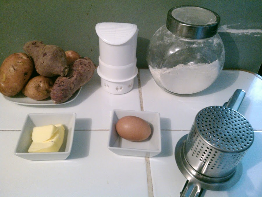 Yo hace un tiempo me hice de esta ñoquera donde solo ponemos la masa dentro apretamos con la manilla y una vez salen los ñoquis del tamaño deseado bajamos el cortador y listo, en caso de no tener ñoquera lo que se debe hacer es formar tiras largas con la masa y luego cortar como pequeños dedos y con la ayuda de un tenedor hacer unos pliegues, estos son importantes por que permiten a los ñoquis absorber la salsa.