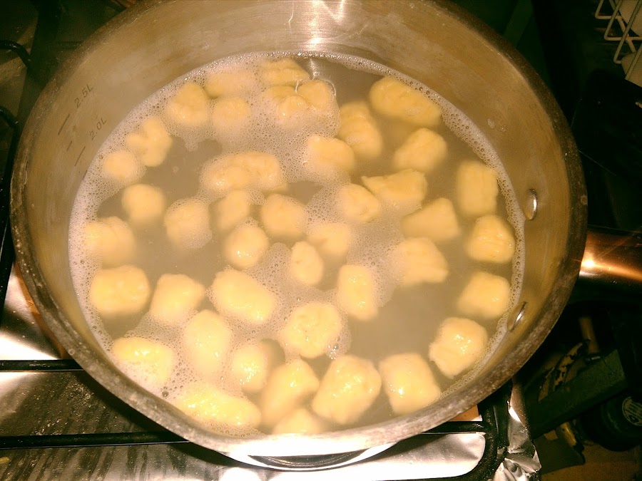 una vez listos empolvoreamos con bastante harina para que no se peguen y los ponemos a cocer con suficiente agua con sal por unos minutos hasta que floten.