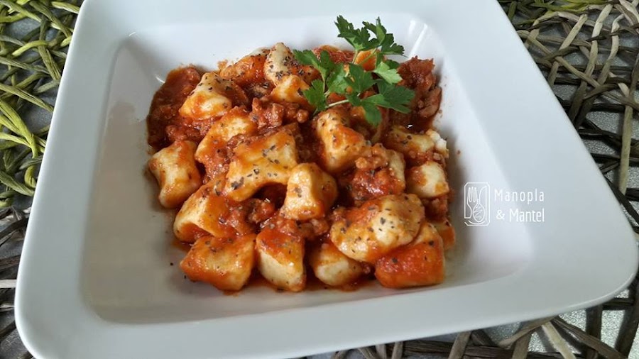 En la foto, están acompañados de una salsa de tomate y albahaca con un poquito de carne picada.