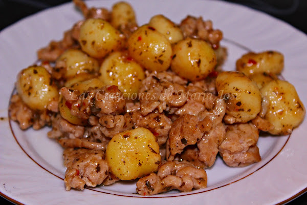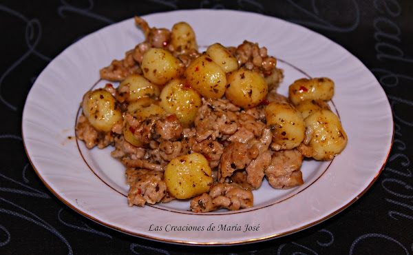 De que este la carne lista echamos la salsa chimichurri y los ñoquis. Removemos bien y listos para comer.